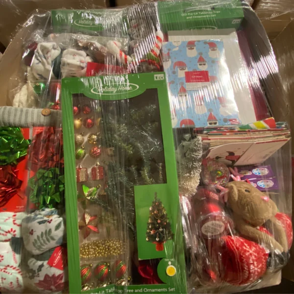 Each pallet contains a festive mix of merchandise designed to appeal to shoppers of all ages. While the exact contents vary by lot, typical Christmas pallets include: